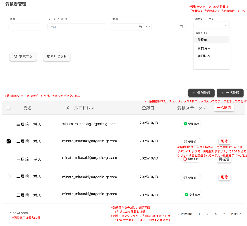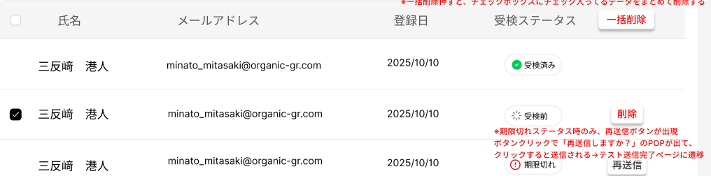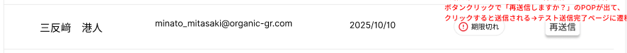 期限切れステータスの対象者は、受検案内の再送信が可能です。