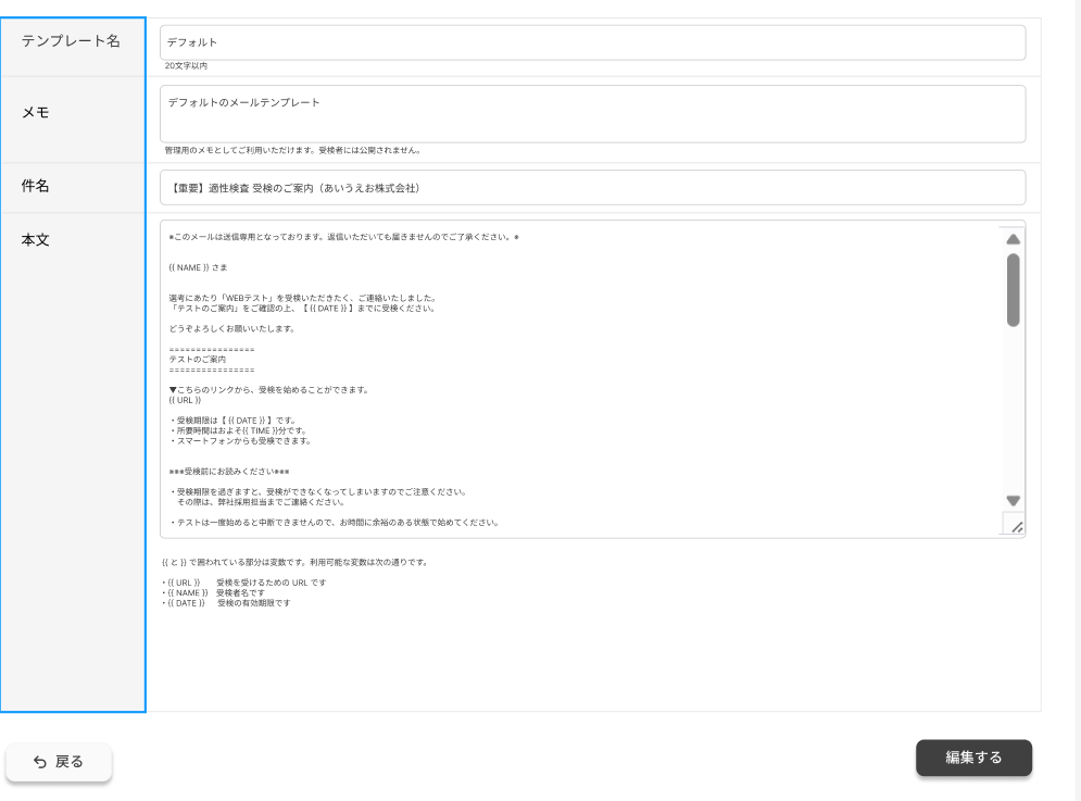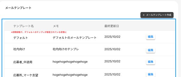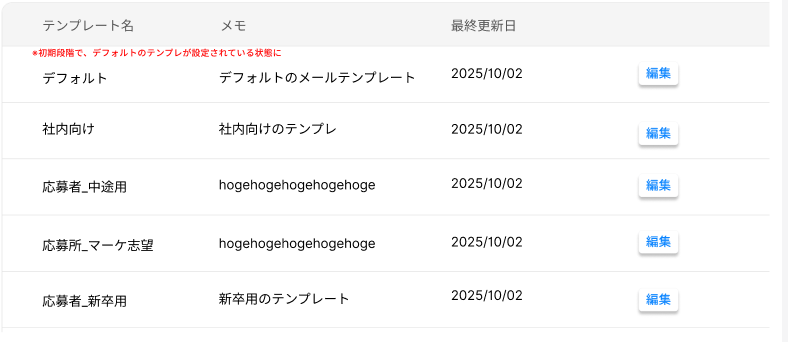①メールテンプレート一覧から、「編集ボタン」を押下してください。