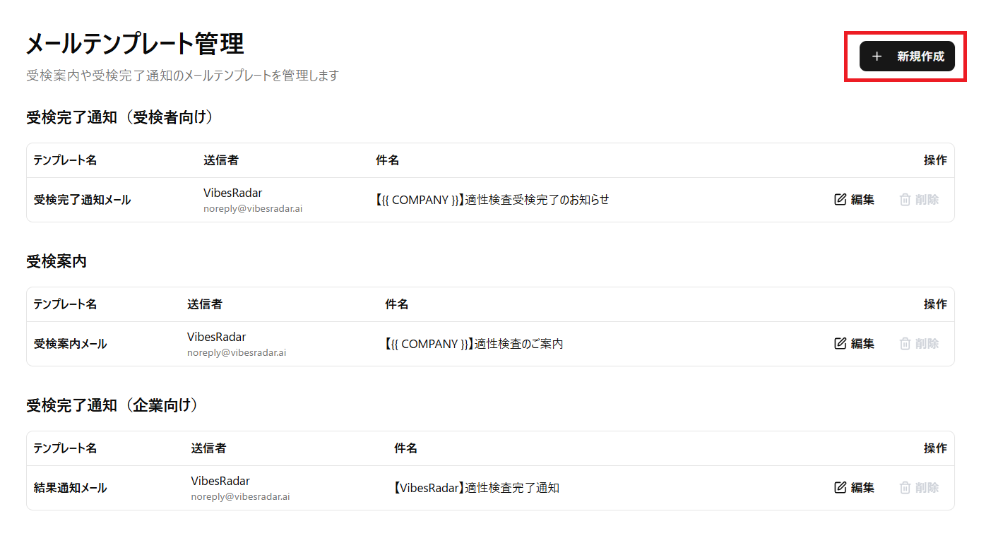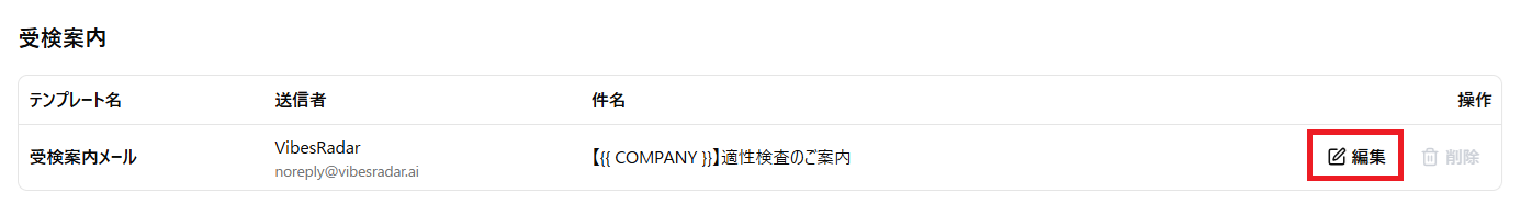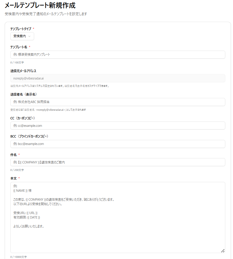 - 受検案内:受検者に受検リンクを送信するメール