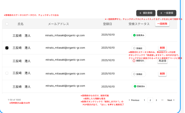 一括登録の場合、受検案内の送信は同時に100名まで可能です。