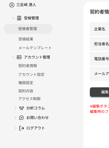 サイドメニューの「ログアウト」ボタンを押下ください。